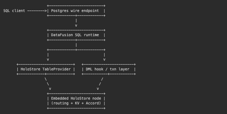 I told Codex to build a distributed SQL engine on top of HoloStore using the Ballista Distributed Query Engine that uses Apache DataFusion and we added Postgres protocol support using DataFusion-Postgres.